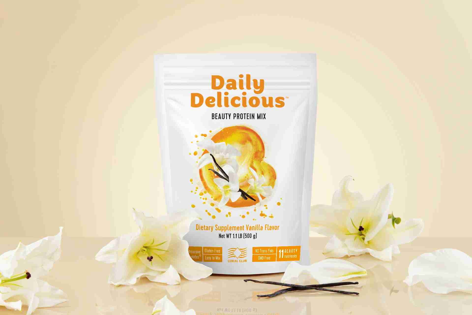The protein in Daily Delicious Beauty Protein Mix, made from fresh skim milk, contains up to 93% pure protein.